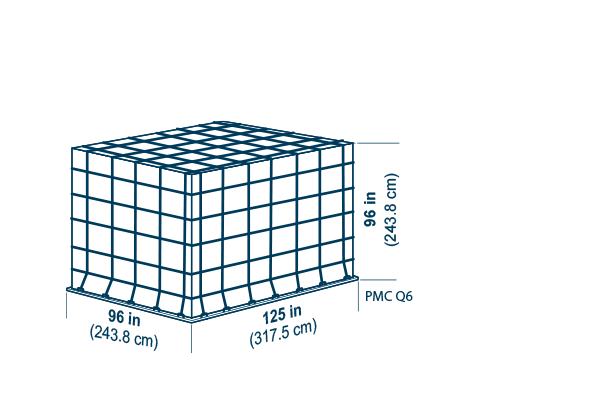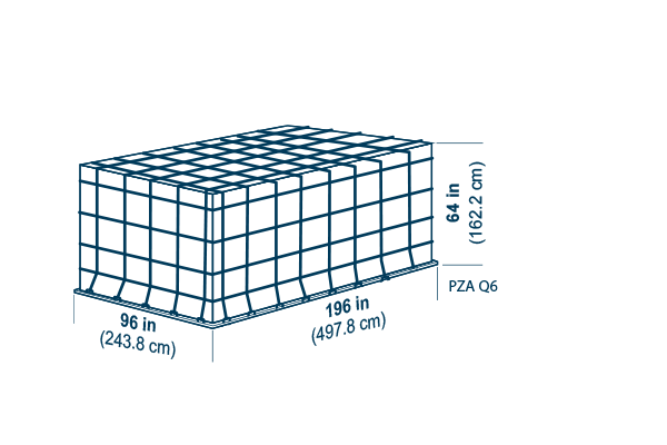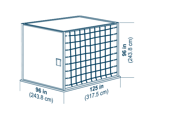 Tare weight: 120 kg (265 lb), Volume: H 243.8 cm (96 in), 17.0 m3 (600 ft3)