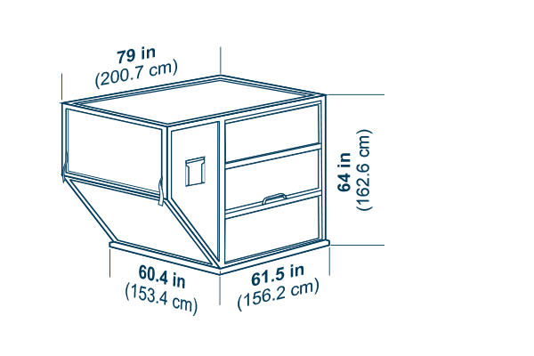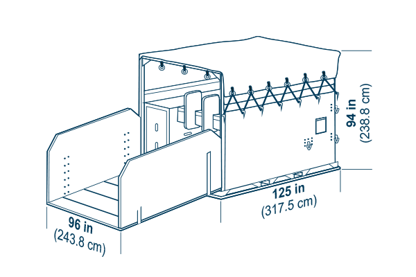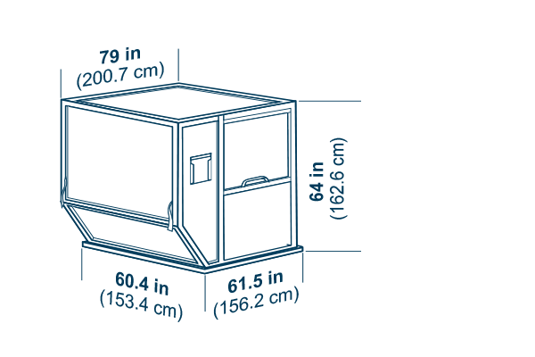 Door opening: 54 x 55-in (137 x 140-cm), Maximum gross weight: 1,588 kg (3,500 lb), Tare weight: 210 kg (463 lb)