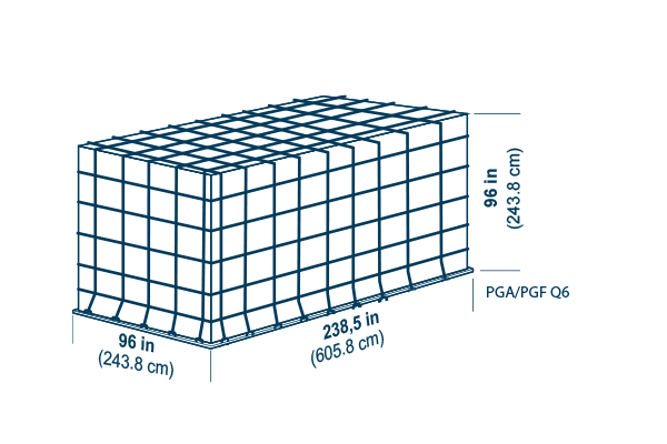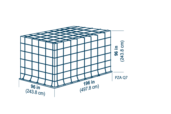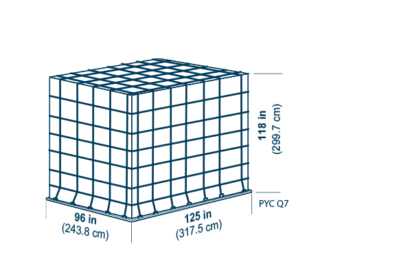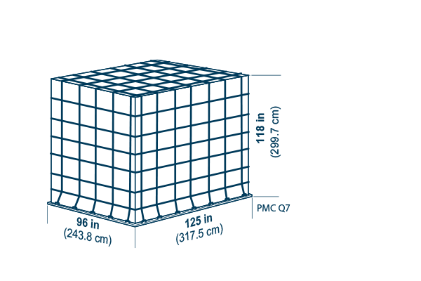 Tare weight: 120 kg (265 lb), Volume: H 243.8 cm (96 in), 17.0 m3 (600 ft3)