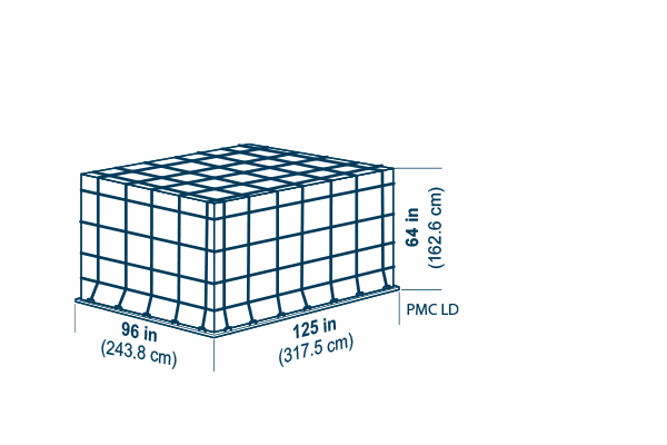 Tare weight: 120 kg (265 lb), Volume: H 162.6 cm (64 in), 11.5 m3 (407 ft3)
